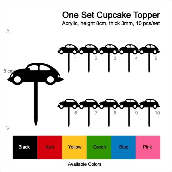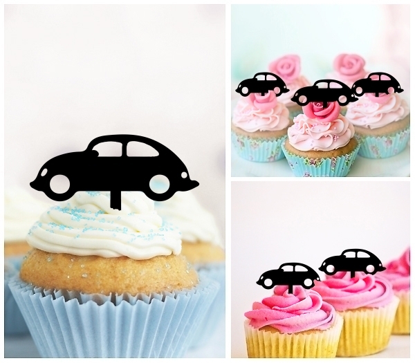 Vintage Car Cupcake 10 Toppers Laser Cut Acrylic for Wedding Birthday Baby Shower Bachelorette Engagement Party Decor