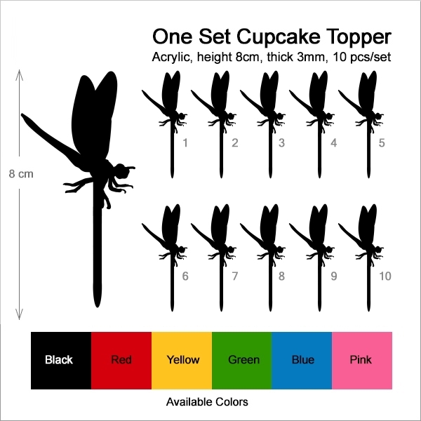 Dragon Fly Insect Cupcake 10 Toppers Laser Cut Acrylic for Wedding Birthday Baby Shower Bachelorette Engagement Party Decor