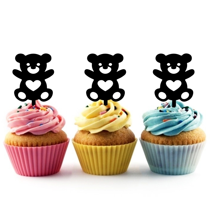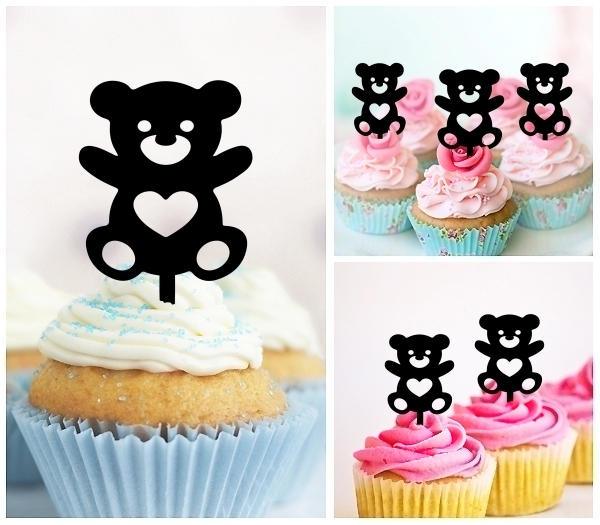 Love Bear Cupcake 10 Toppers Laser Cut Acrylic for Wedding Birthday Baby Shower Bachelorette Engagement Party Decor