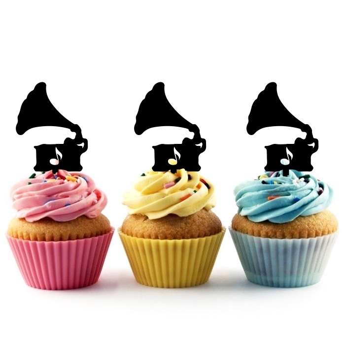 Record Player Cupcake 10 Toppers Laser Cut Acrylic for Wedding Birthday Baby Shower Bachelorette Engagement Party Decor