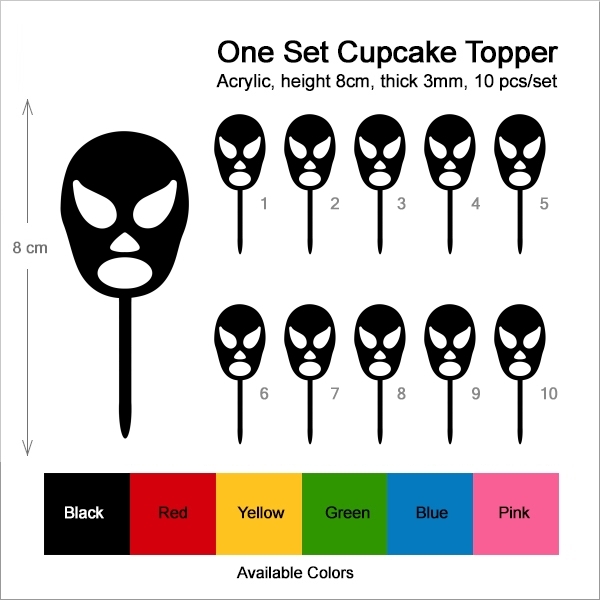 Rider Mask Cupcake 10 Toppers Laser Cut Acrylic for Wedding Birthday Baby Shower Bachelorette Engagement Party Decor