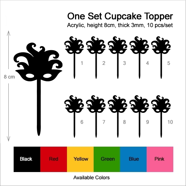 Fancy Mask Cupcake 10 Toppers Laser Cut Acrylic for Wedding Birthday Baby Shower Bachelorette Engagement Party Decor