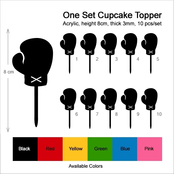 Boxing Glove Cupcake 10 Toppers Laser Cut Acrylic for Wedding Birthday Baby Shower Bachelorette Engagement Party Decor