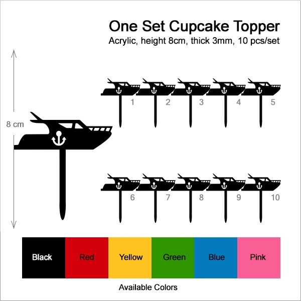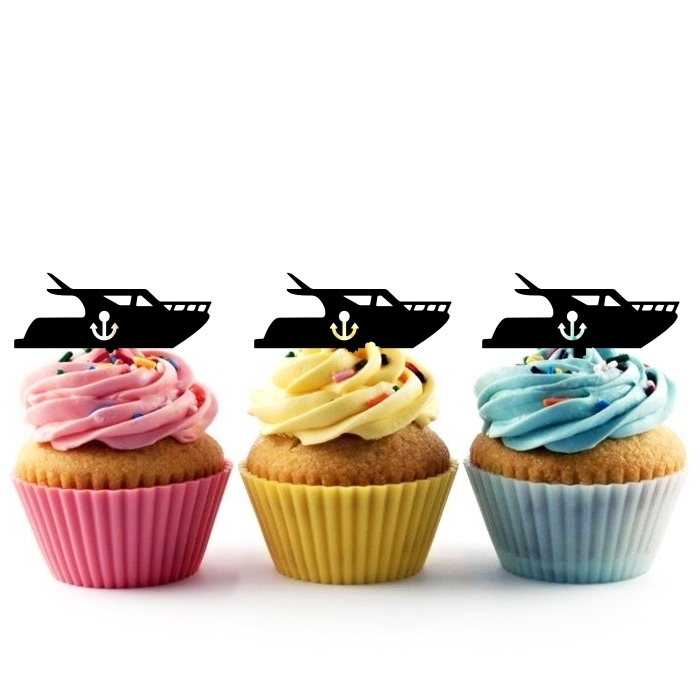 Motor Boat Cupcake 10 Toppers Laser Cut Acrylic for Wedding Birthday Baby Shower Bachelorette Engagement Party Decor