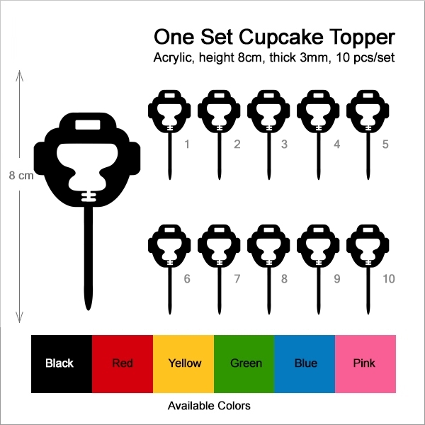 Boxing Head Guard Cupcake 10 Toppers Laser Cut Acrylic for Wedding Birthday Baby Shower Bachelorette Engagement Party Decor