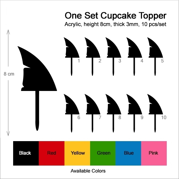 Shark Fin Cupcake 10 Toppers Laser Cut Acrylic for Wedding Birthday Baby Shower Bachelorette Engagement Party Decor