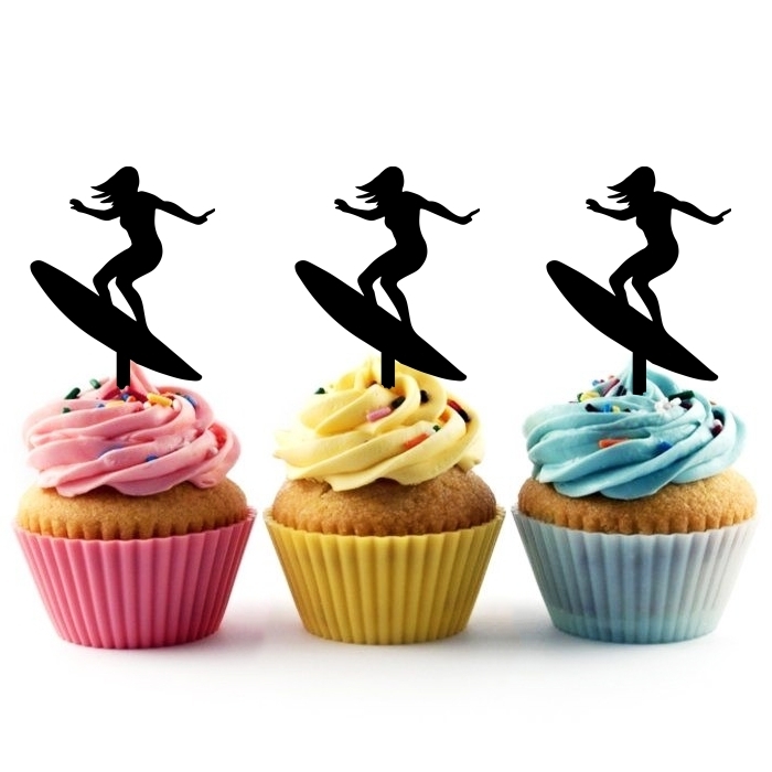 Surfer Girl Cupcake 10 Toppers Laser Cut Acrylic for Wedding Birthday Baby Shower Bachelorette Engagement Party Decor