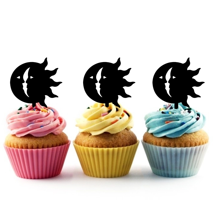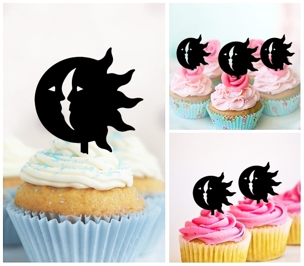 Moon Sun Cupcake 10 Toppers Laser Cut Acrylic for Wedding Birthday Baby Shower Bachelorette Engagement Party Decor