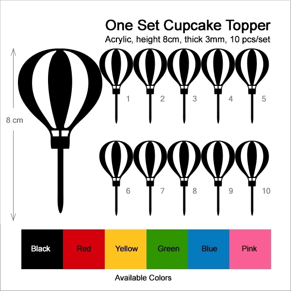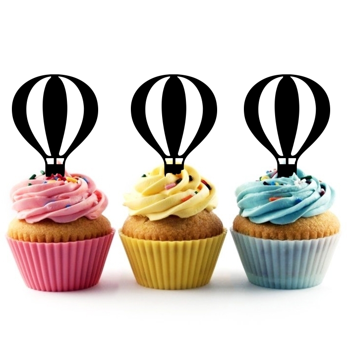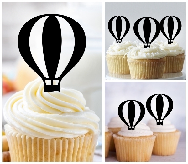 Hot Air Balloon Cupcake 10 Toppers Laser Cut Acrylic for Wedding Birthday Baby Shower Bachelorette Engagement Party Decor