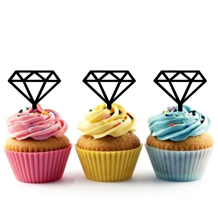 Diamond Cupcake 10 Toppers Laser Cut Acrylic for Wedding Birthday Baby Shower Bachelorette Engagement Party Decor
