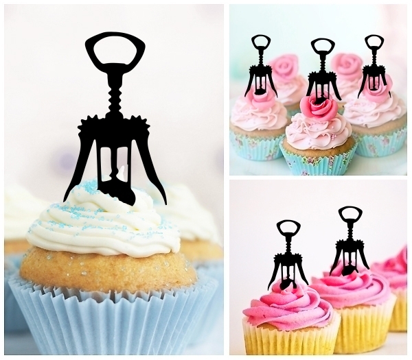 Wine Bottle Opener Cupcake 10 Toppers Laser Cut Acrylic for Wedding Birthday Baby Shower Bachelorette Engagement Party Decor