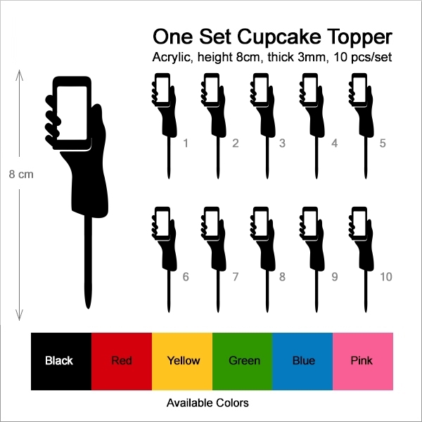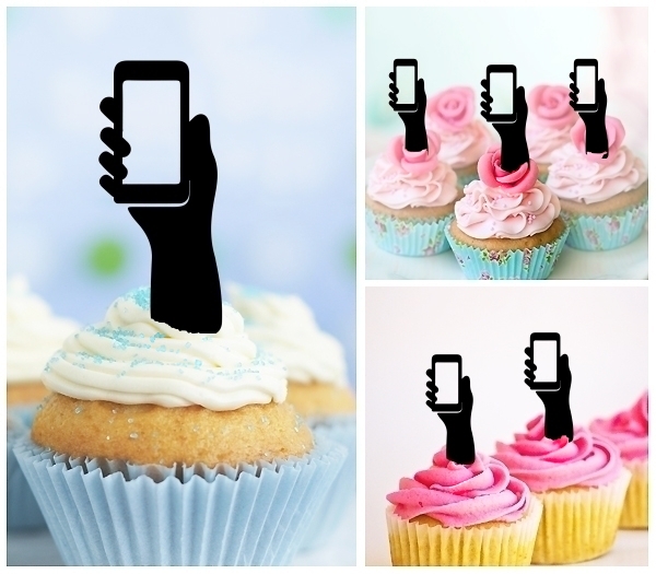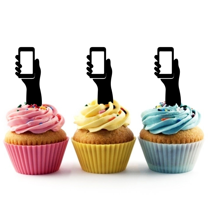 Hand Mobile Phone Cupcake 10 Toppers Laser Cut Acrylic for Wedding Birthday Baby Shower Bachelorette Engagement Party Decor
