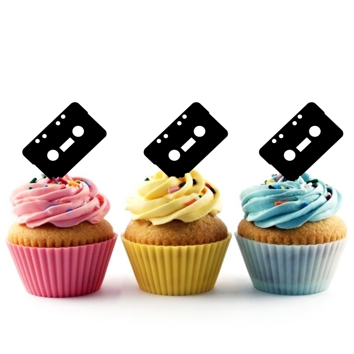 Cassette Tape Cupcake 10 Toppers Laser Cut Acrylic for Wedding Birthday Baby Shower Bachelorette Engagement Party Decor