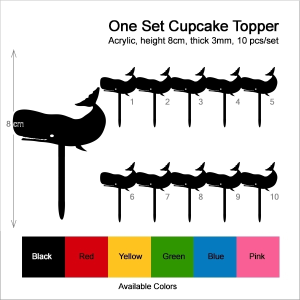 Sperm Whale Cupcake 10 Toppers Laser Cut Acrylic for Wedding Birthday Baby Shower Bachelorette Engagement Party Decor