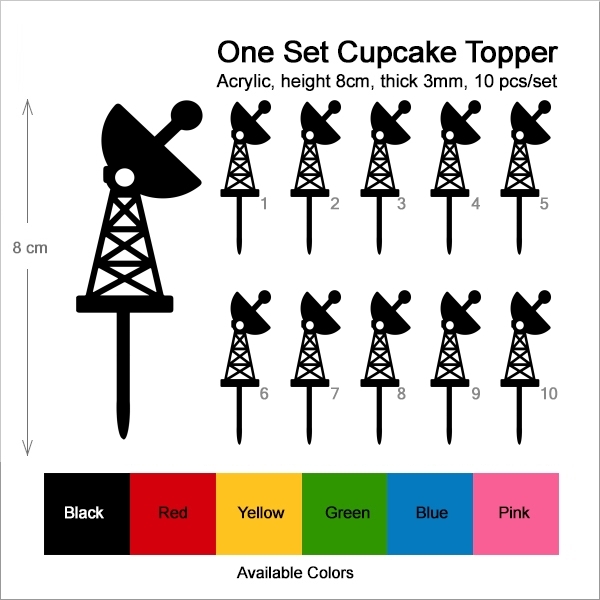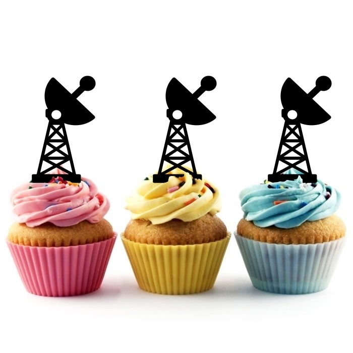 Satellite Antenna Tower Cupcake 10 Toppers Laser Cut Acrylic for Wedding Birthday Baby Shower Bachelorette Engagement Party Decor