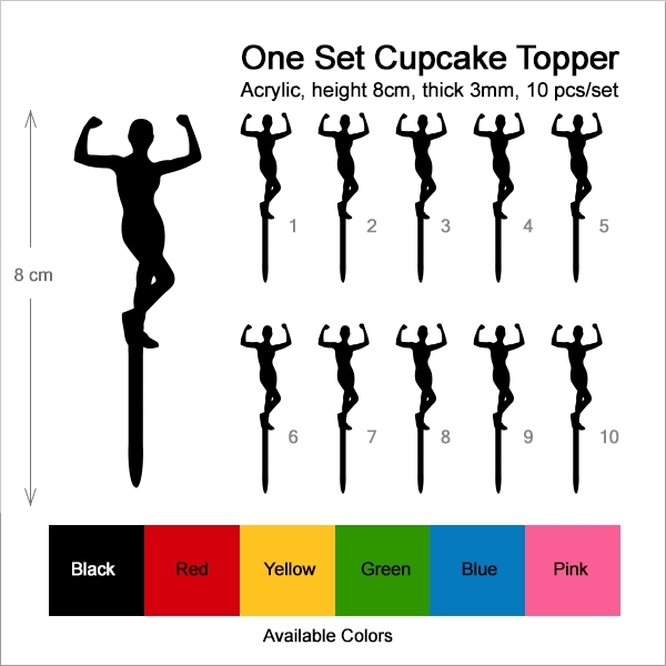 Fitness Female Cupcake 10 Toppers Laser Cut Acrylic for Wedding Birthday Baby Shower Bachelorette Engagement Party Decor