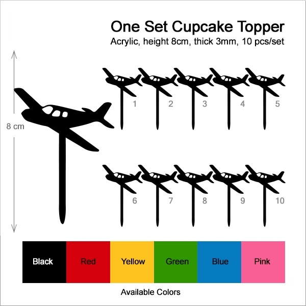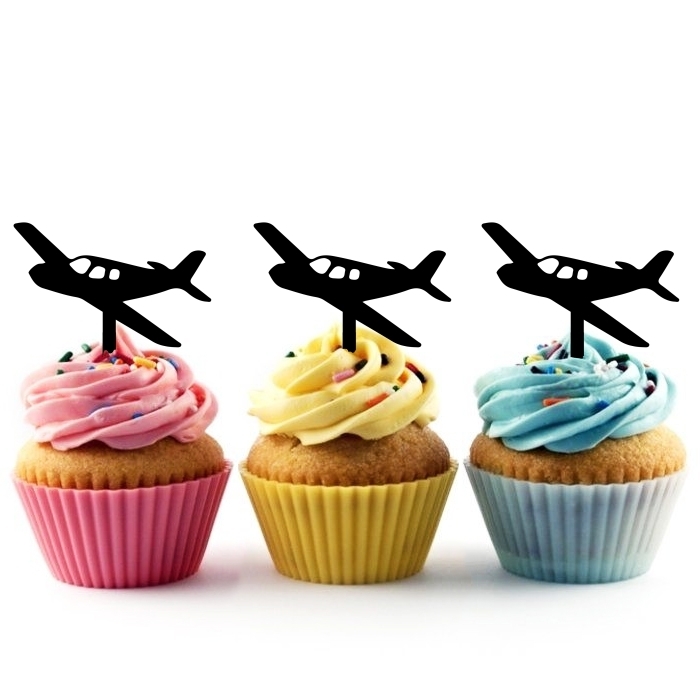 Airplane Aircraft Cupcake 10 Toppers Laser Cut Acrylic for Wedding Birthday Baby Shower Bachelorette Engagement Party Decor