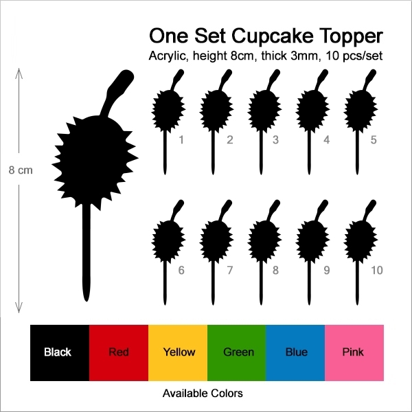 Durian Fruit Cupcake 10 Toppers Laser Cut Acrylic for Wedding Birthday Baby Shower Bachelorette Engagement Party Decor