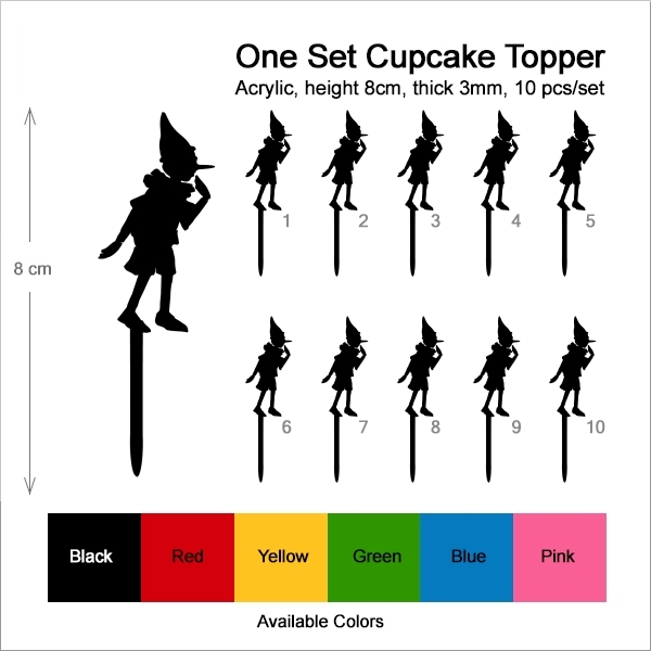 Pinocchio Cupcake 10 Toppers Laser Cut Acrylic for Wedding Birthday Baby Shower Bachelorette Engagement Party Decor