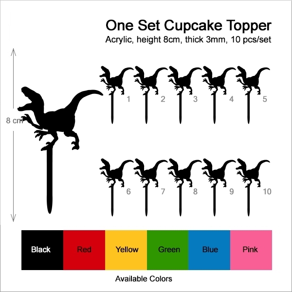Raptor Dinosaur Cupcake 10 Toppers Laser Cut Acrylic for Wedding Birthday Baby Shower Bachelorette Engagement Party Decor