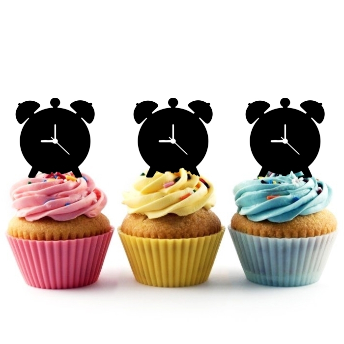 Alarm Clock Cupcake 10 Toppers Laser Cut Acrylic for Wedding Birthday Baby Shower Bachelorette Engagement Party Decor