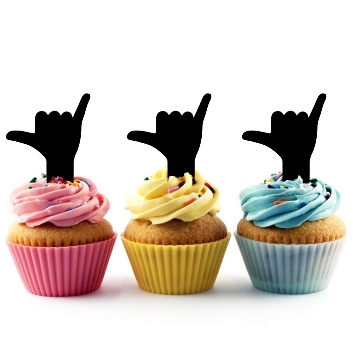 Shaka Hand Sign Cupcake 10 Toppers Laser Cut Acrylic for Wedding Birthday Baby Shower Bachelorette Engagement Party Decor