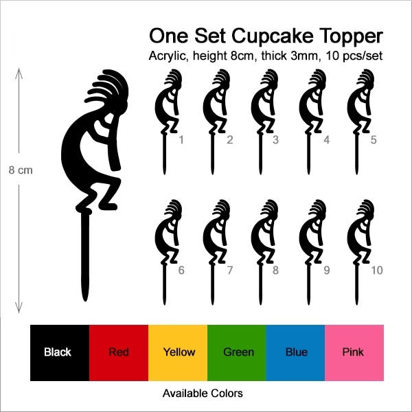 Aztec Flute Player Cupcake 10 Toppers Laser Cut Acrylic for Wedding Birthday Baby Shower Bachelorette Engagement Party Decor