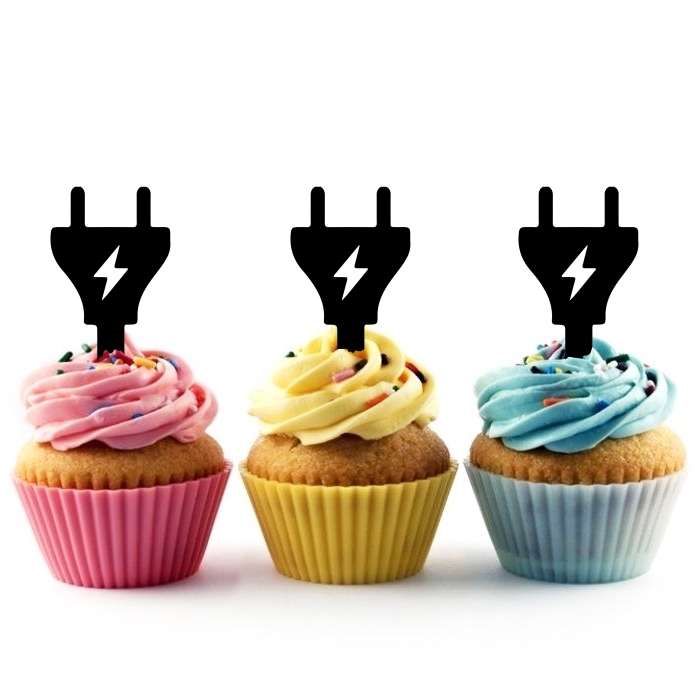 AC Power Plug Cupcake 10 Toppers Laser Cut Acrylic for Wedding Birthday Baby Shower Bachelorette Engagement Party Decor