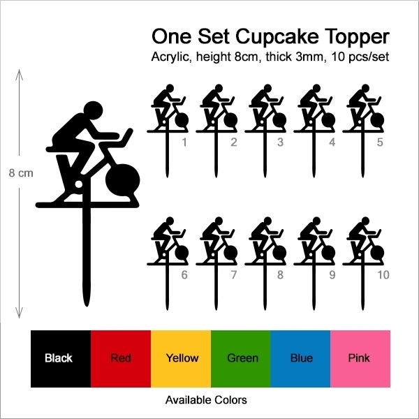 Fitness Cycling Machine Cupcake 10 Toppers Laser Cut Acrylic for Wedding Birthday Baby Shower Bachelorette Engagement Party Decor
