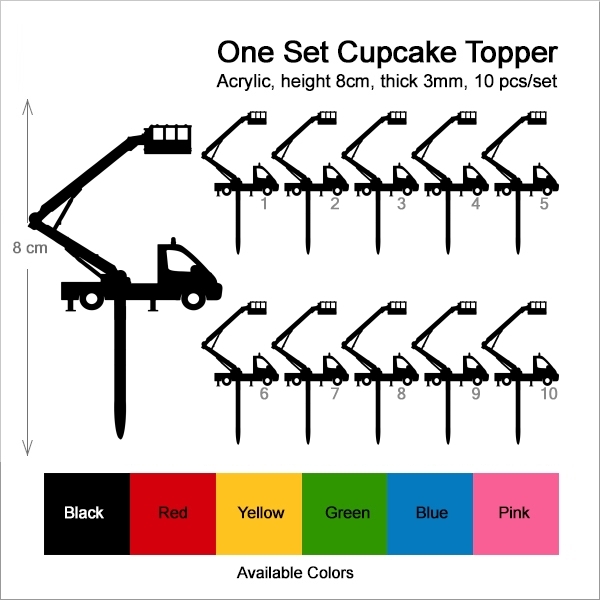 Bucket Truck Cupcake 10 Toppers Laser Cut Acrylic for Wedding Birthday Baby Shower Bachelorette Engagement Party Decor