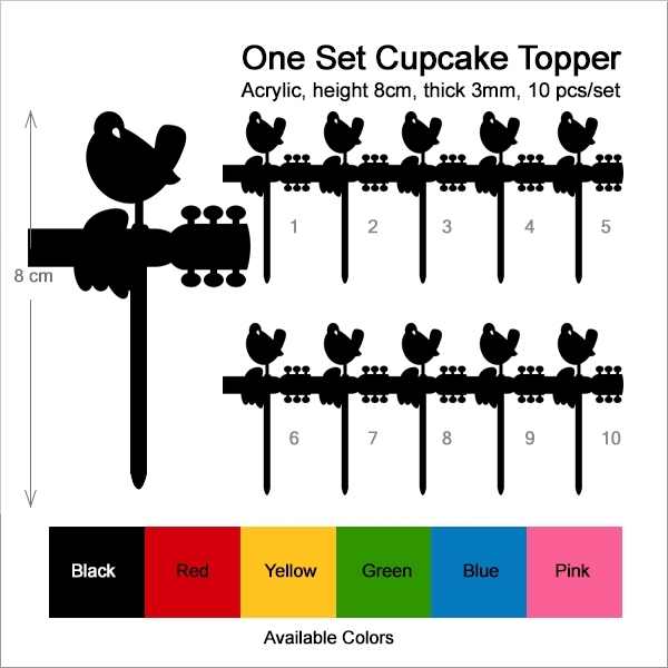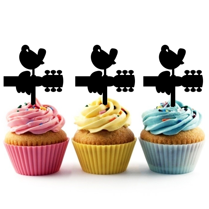 Woodstock Festival Guitar and a Bird Cupcake 10 Toppers Laser Cut Acrylic for Wedding Birthday Baby Shower Bachelorette Engagement Party Decor