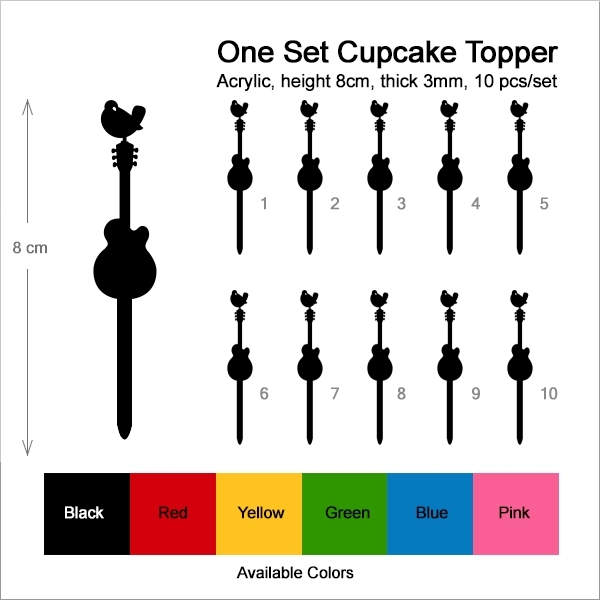 Woodstock Festival Guitar and a Bird Cupcake 10 Toppers Laser Cut Acrylic for Wedding Birthday Baby Shower Bachelorette Engagement Party Decor