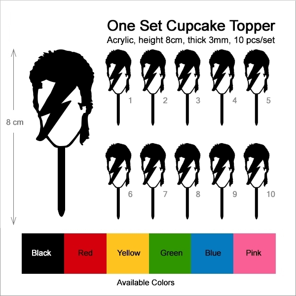 David Bowie Cupcake 10 Toppers Laser Cut Acrylic for Wedding Birthday Baby Shower Bachelorette Engagement Party Decor