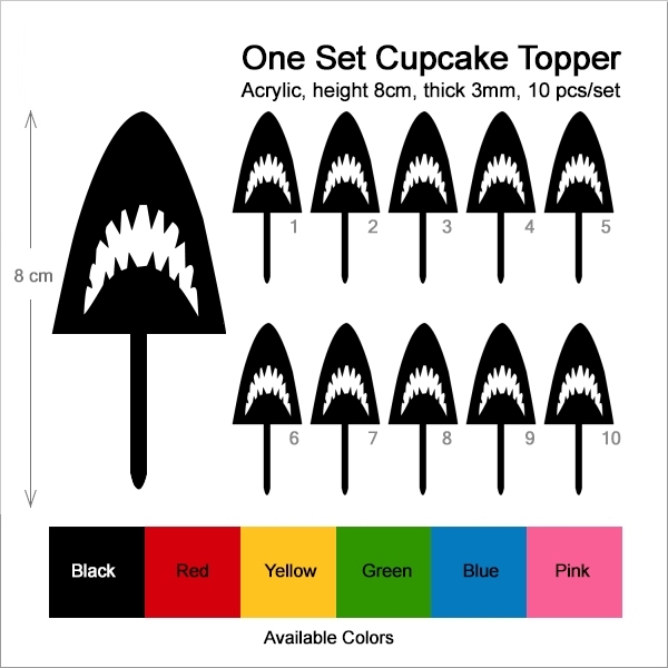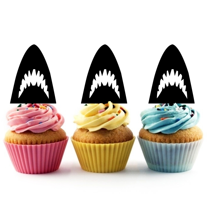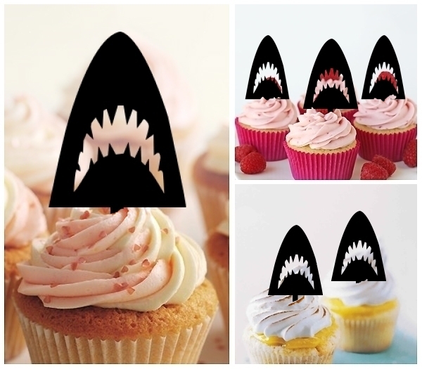 Jaw Shark Teeth Cupcake 10 Toppers Laser Cut Acrylic for Wedding Birthday Baby Shower Bachelorette Engagement Party Decor
