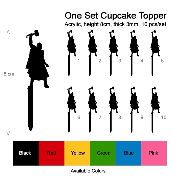 Thor Hammer Cupcake 10 Toppers Laser Cut Acrylic for Wedding Birthday Baby Shower Bachelorette Engagement Party Decor