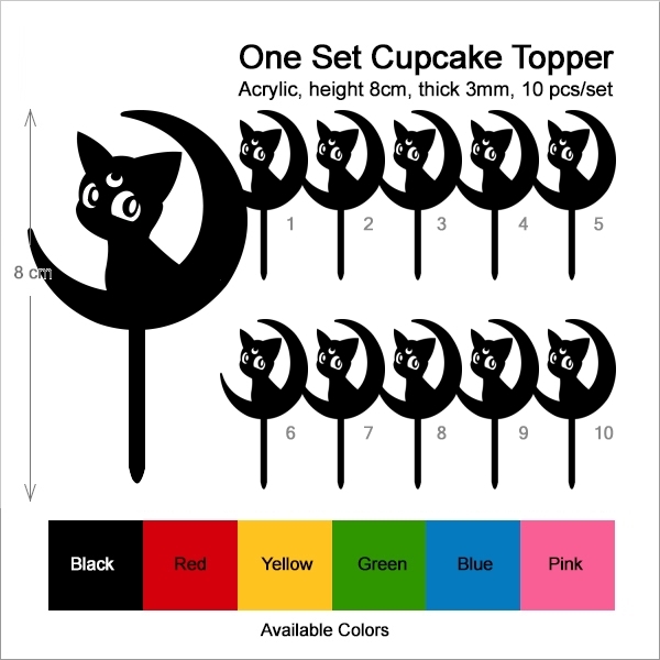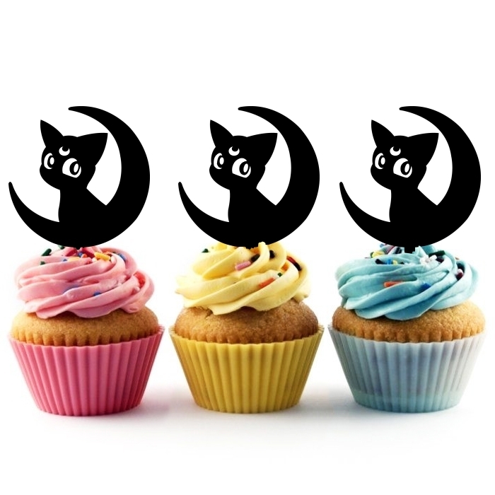 Sailor Moon Luna Cupcake 10 Toppers Laser Cut Acrylic for Wedding Birthday Baby Shower Bachelorette Engagement Party Decor