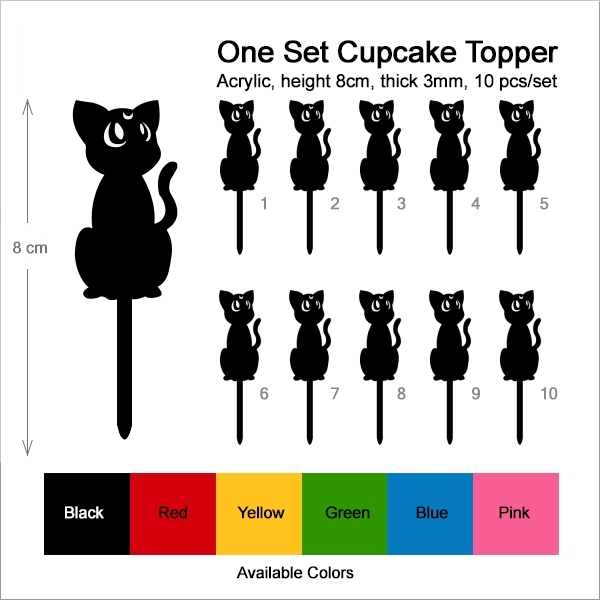 Sailor Moon Luna Cupcake 10 Toppers Laser Cut Acrylic for Wedding Birthday Baby Shower Bachelorette Engagement Party Decor