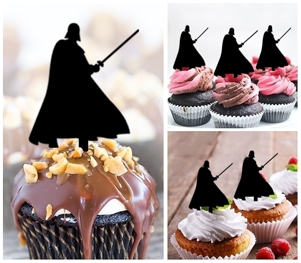 Darth Vader Cupcake 10 Toppers Laser Cut Acrylic for Wedding Birthday Baby Shower Bachelorette Engagement Party Decor