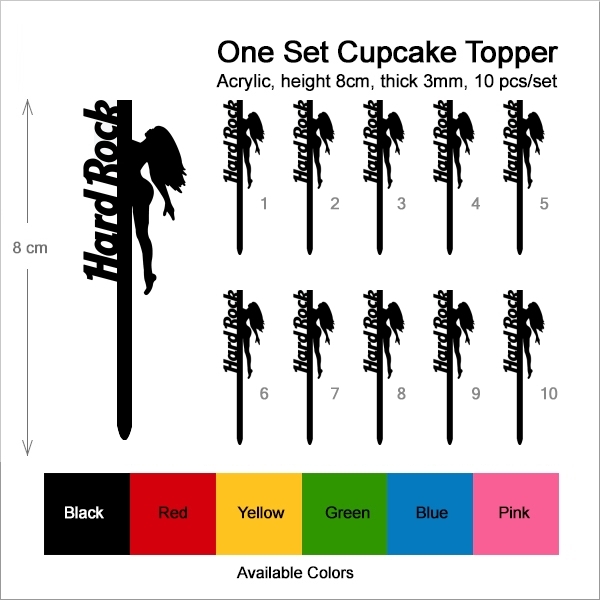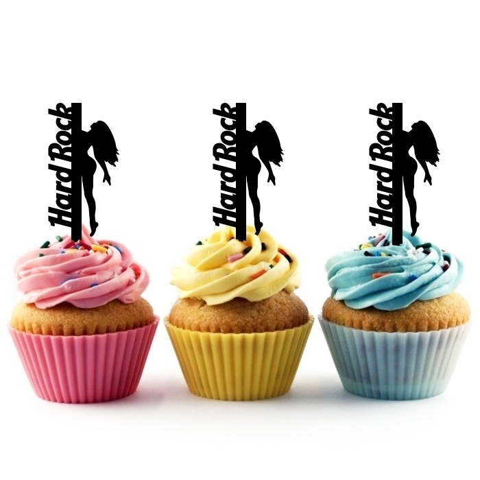 Hard Rock Cupcake 10 Toppers Laser Cut Acrylic for Wedding Birthday Baby Shower Bachelorette Engagement Party Decor