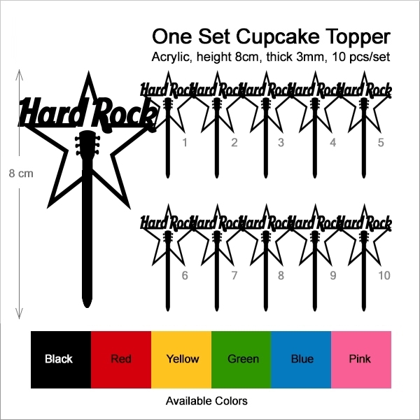 Hard Rock Cupcake 10 Toppers Laser Cut Acrylic for Wedding Birthday Baby Shower Bachelorette Engagement Party Decor
