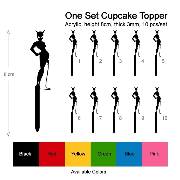 Catwoman Cupcake 10 Toppers Laser Cut Acrylic for Wedding Birthday Baby Shower Bachelorette Engagement Party Decor