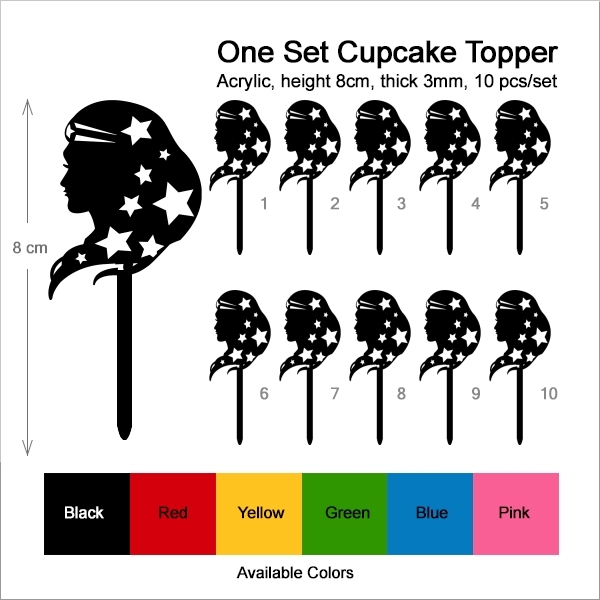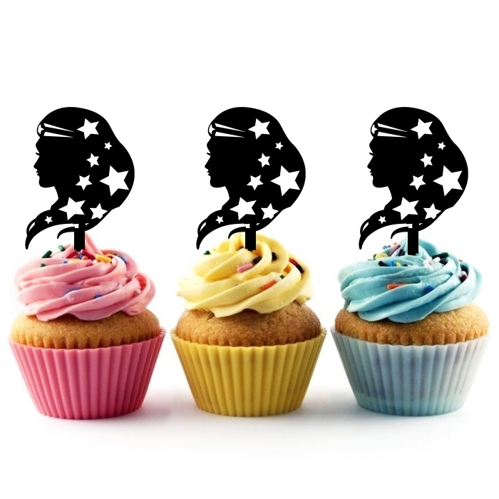 Wonder Woman Cupcake 10 Toppers Laser Cut Acrylic for Wedding Birthday Baby Shower Bachelorette Engagement Party Decor