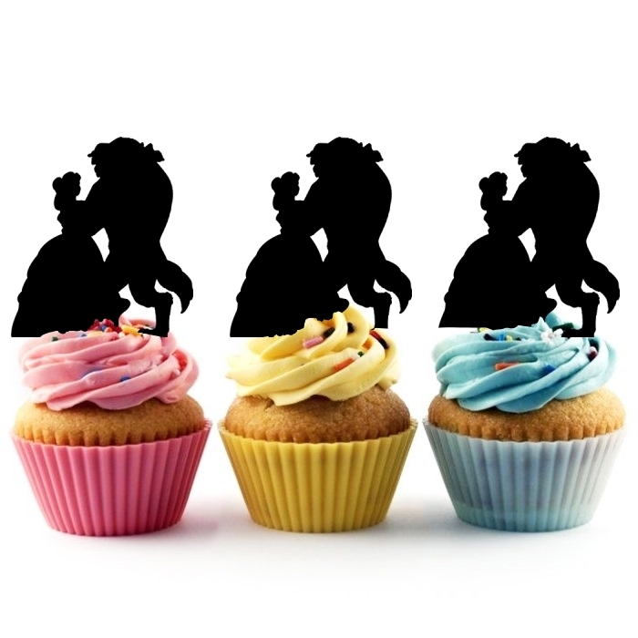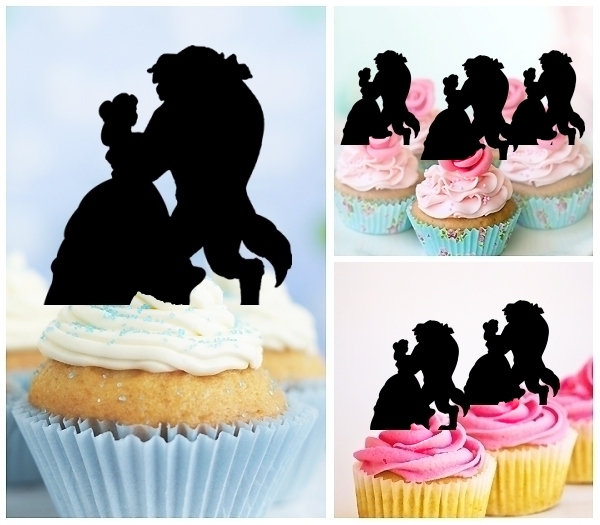 Beauty and the Beast Cupcake 10 Toppers Laser Cut Acrylic for Wedding Birthday Baby Shower Bachelorette Engagement Party Decor