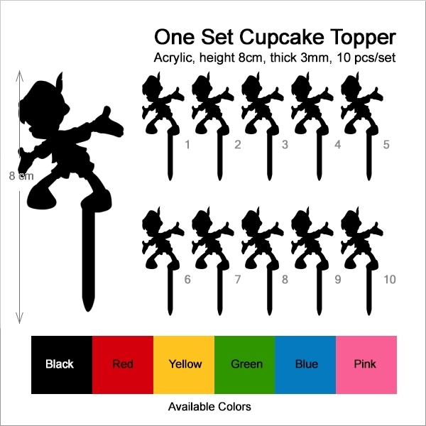 Pinocchio Cupcake 10 Toppers Laser Cut Acrylic for Wedding Birthday Baby Shower Bachelorette Engagement Party Decor