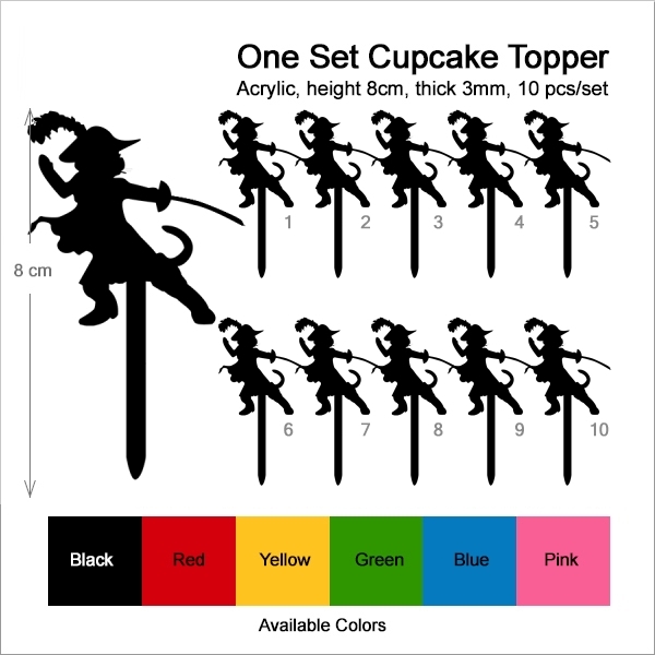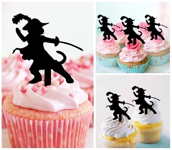 Puss in Boots Cupcake 10 Toppers Laser Cut Acrylic for Wedding Birthday Baby Shower Bachelorette Engagement Party Decor