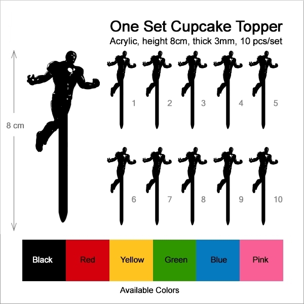 Iron Man Cupcake 10 Toppers Laser Cut Acrylic for Wedding Birthday Baby Shower Bachelorette Engagement Party Decor
