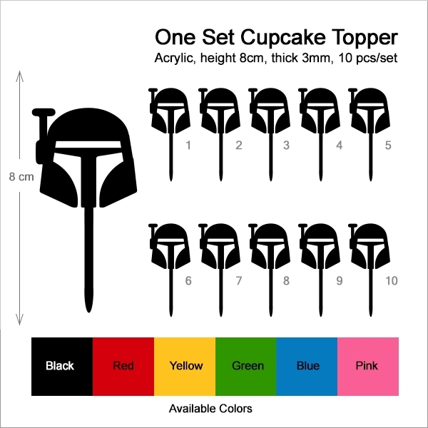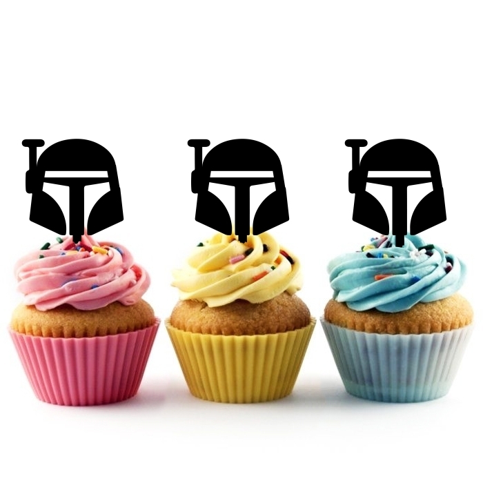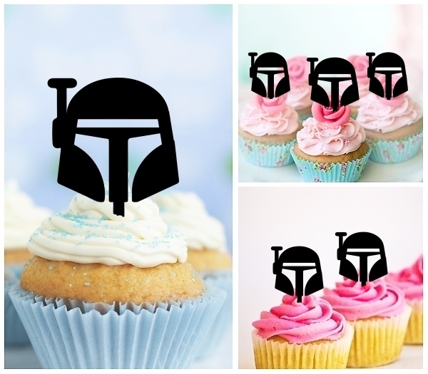 Starwars Inspired Boba Fett Helmet Cupcake 10 Toppers Laser Cut Acrylic for Wedding Birthday Baby Shower Bachelorette Engagement Party Decor
