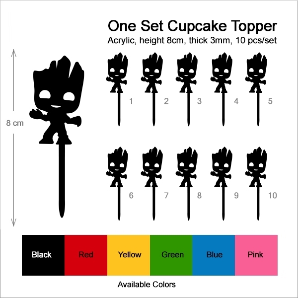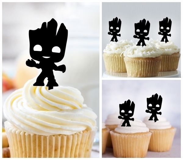 Baby Groot Cupcake 10 Toppers Laser Cut Acrylic for Wedding Birthday Baby Shower Bachelorette Engagement Party Decor