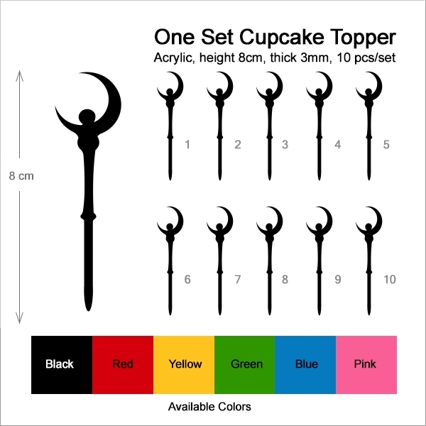Sailor Moon Wand Cupcake 10 Toppers Laser Cut Acrylic for Wedding Birthday Baby Shower Bachelorette Engagement Party Decor