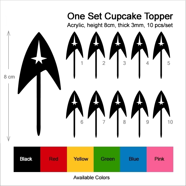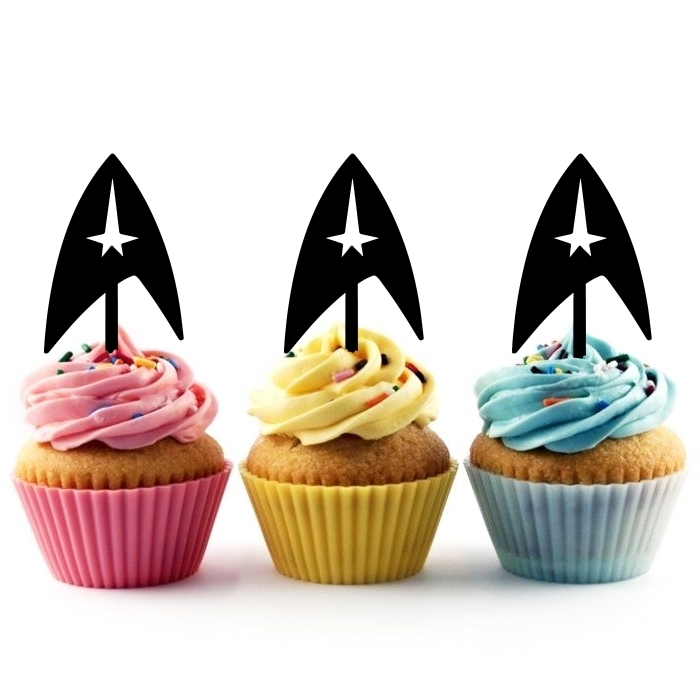 Star Trek Symbol Cupcake 10 Toppers Laser Cut Acrylic for Wedding Birthday Baby Shower Bachelorette Engagement Party Decor